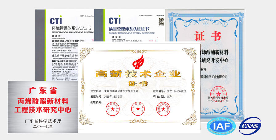 瑞晟新材料,成立于2005年,系專業從事綠色環保材料研發,生產和銷售的高科技企業。主要產品包括水性UV樹脂,聚氨酯丙烯酸酯、改性環氧丙烯酸酯、丙烯酸樹脂,特殊改性聚酯樹脂以及其他特殊新材料等,年產量可達一萬噸。產品用途廣泛,涉獵眾多,主要應用于智能家電、智能穿戴、智能家居,汽車內外飾,工程機械等。占地50畝,是專業從事新材料研發、生產和銷售的國家高新技術企業和廣東省專精特新中小企業。主要產品包括水性UV樹脂、聚氨酯丙烯酸酯、丙烯酸樹脂、聚酯樹脂、無機納米水性陶瓷樹脂以及其他特殊新材料等,年產量可達一萬噸。產品用途廣泛,符合當前環保要求。涉及產業眾多,主要應用于:3C(手機、筆記本電腦等)、汽車內飾、家電家具、工程機械、市政工程等。